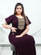 Zairra Women’s Cotton Embroidered Nightgown with Pocket – Black Maxi Sleepwear